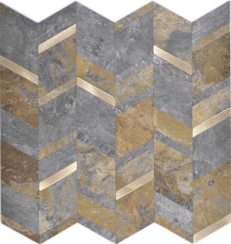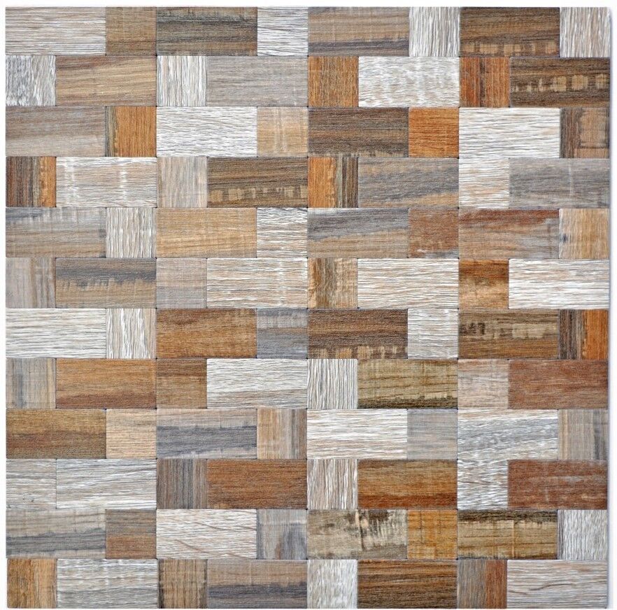 Auto-Adhésif Aluminium Mosaïque Metalique Optique Bois Beige Gris Wc 200-2322