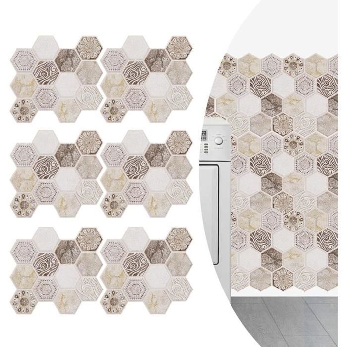 Autocollant Mural de Carrelage PVC 3D Auto-Adhésif Simulation Mosaïque Décoration de Chambre 6Pcs