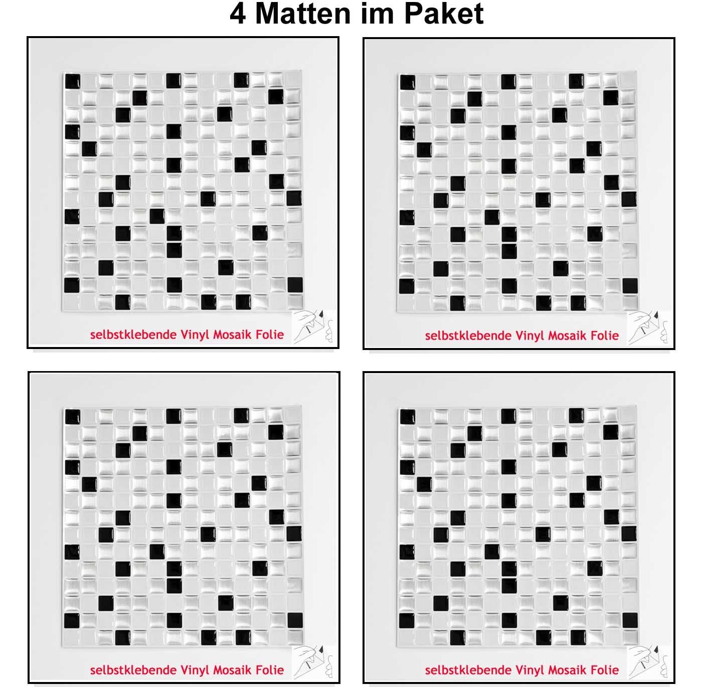 Auto-Adhésif Mosaïque Film Argent Noir Miroir Mosaïque Cuisine - 24034 4 Nattes