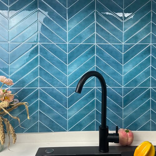 Smart Tiles Credence Adhesive pour Cuisine - Chevron Bleu/Vert, Carrelage Adhesif Mural salle de bain 3D, 5 Stickers Muraux (29.02x22.86 cm), Autocollant Carreaux Adhesif fabriqué au Canada