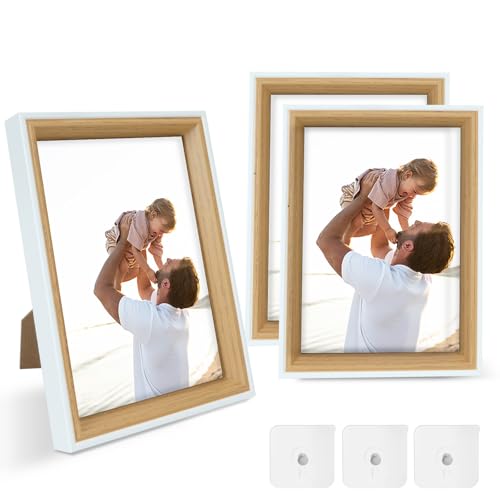 FALSKT 3PCS Cadre Photo 13×18cm en Blanc Cadre en Bois MDF Cadre avec de l'Acrylique Murale Ou Pose Sur Table, Élégant pour Photos et Collages,3PCS Adhesif Accroche Tableau Sans Percer