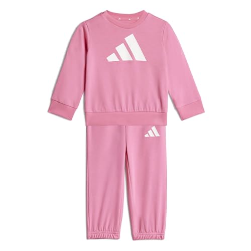 adidas Unisex Baby SEASONAL ESSENTIALS TIBERIO 3 STRIPES FLEECE CREW SET, clear pink/pink fusion/white, 2-3 Years