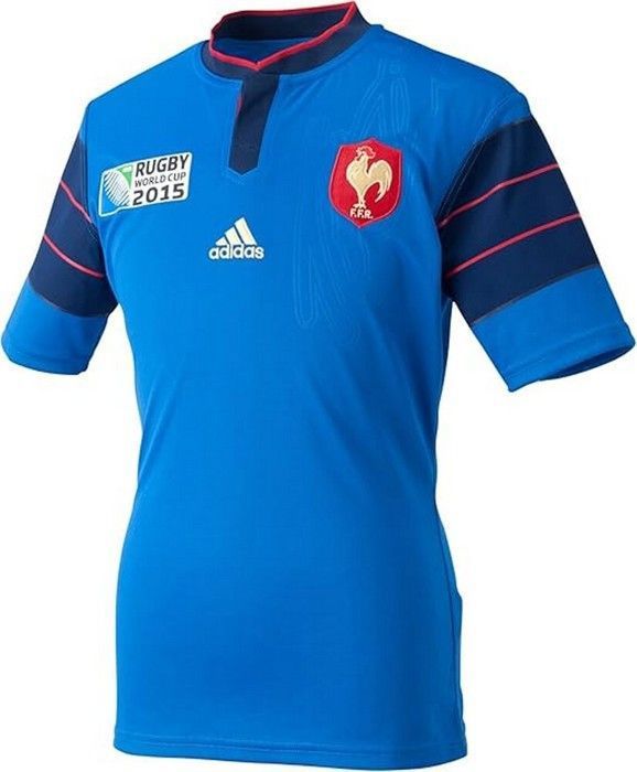 Maillot Officiel - Adidas - France - Coupe du Monde Rugby 2015 - Enfant - Manches courtes - Bleu