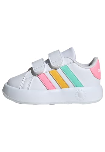 adidas Mixte Enfant Grand Court Court Elastic Lace and Top Strap Shoes, Cloud White/Pulse Mint/Beam Pink, 28 EU