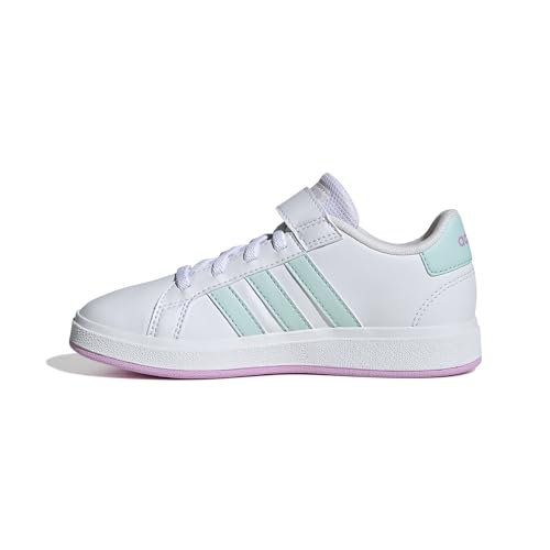 adidas Grand Court Elastic Lace and Top Strap Shoes Baskets, Cloud White/Pulse Mint/Beam Pink, 34 EU