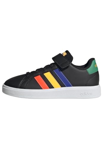 adidas Grand Court Elastic Lace and Top Strap Shoes, Chaussures de Tennis Unisexe-Enfants et Garçons, Core Black Lucid Blue Court Green, 35.5 EU