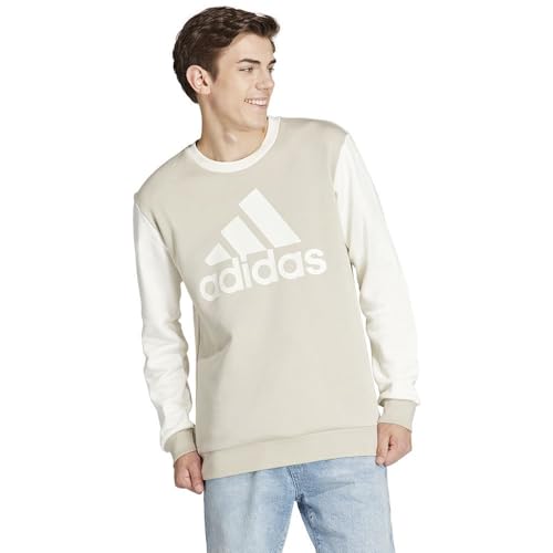 adidas Homme Essentials Fleece Big Logo Sweatshirt, Putty Grey/Off White, M Tall