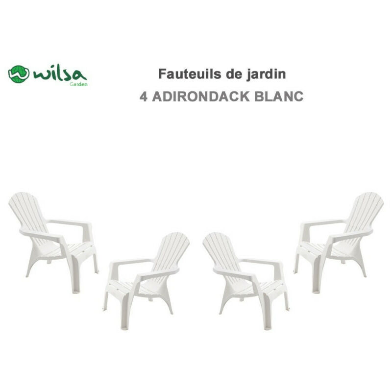 Wilsa Garden - Fauteuil Adirondack résine polypropylène Blanc - 4 Fauteuils Adirondack