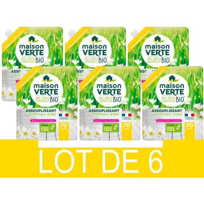 [Lot de 6] MAISON VERTE Adoucissant aux Huiles Essentielles - Bio - Sans palme - 1.4L