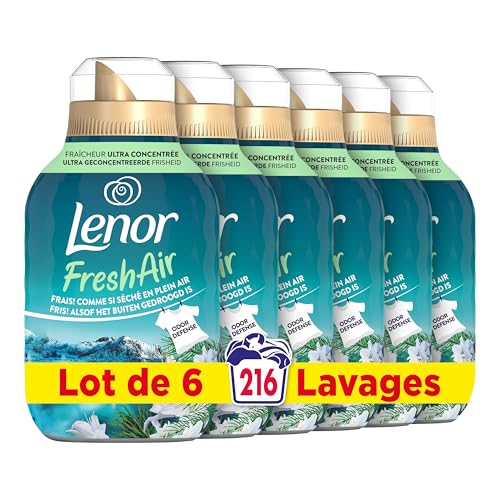 Lenor Fresh Air Adoucissant 216 lavages (36x6), Parfum Solstice Boréal, Protection Anti-Odeurs, Fraîcheur Ultra Concentrée, Fabriqué En France