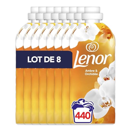 Lenor Adoucissant 440 Lavages (55x8), Parfum Ambre et Orchidée, 24H De Fraîcheur Relaxante, Avec Une Touche D’Huiles Essentielles, Testé Dermatologiquement, Fabriqué En France