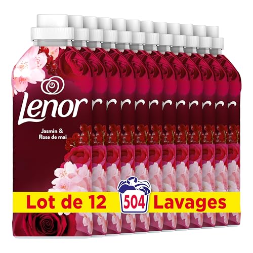 Lenor Adoucissant, 504 Lavages (12 x 42 Lavages), Jasmin et Rose de Mai, 24H De Fraîcheur Relaxante, Avec Une Touche D’Huiles Essentielles