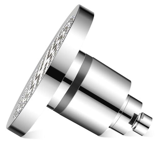 Pommeau de douche haute pression avec filtre à chlore – Spray rond pour une large couverture – Adoucisseur d'eau argenté pour une peau et des cheveux plus sains – Idéal pour améliorer la salle de bain