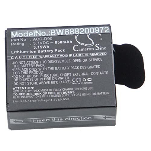 vhbw 1x Batterie Compatible avec AEE D90, S90, S91B, LyfeTitan, LyfeSilver, LyfeS72 caméra de Sport, Appareil Photo (850mAh, 3,7V, Li-ION)