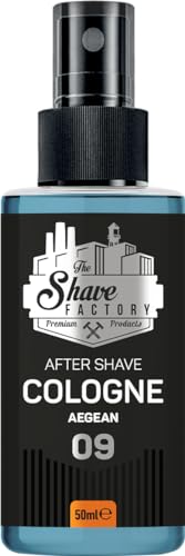 THE SHAVE FACTORY Aftershave Cologne – Aegean 50ml – Parfum Frais Citrus & Boisé pour Hommes – Après-Rasage Énergisant & Rafraîchissant – Apaise la Peau & Réduit les Irritations