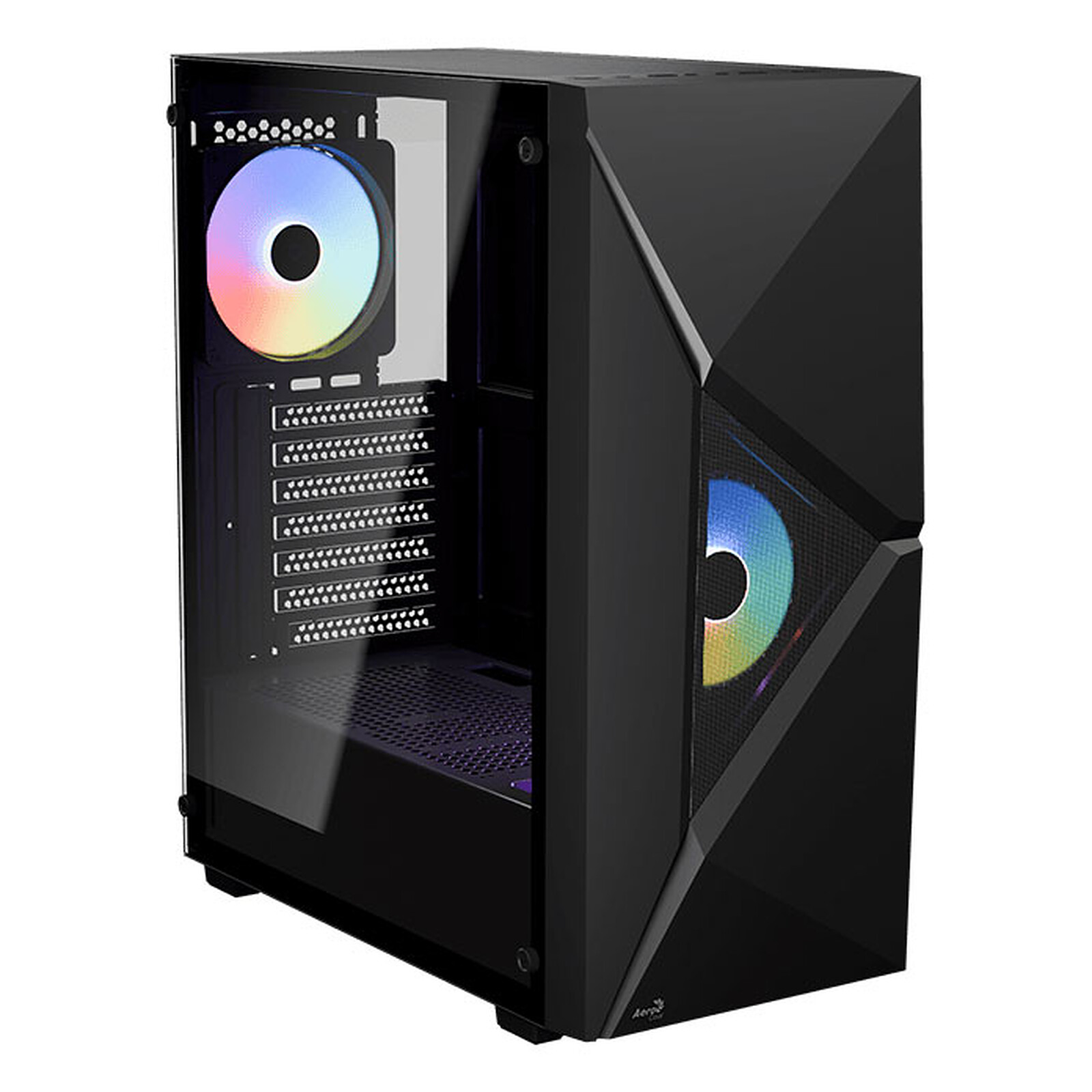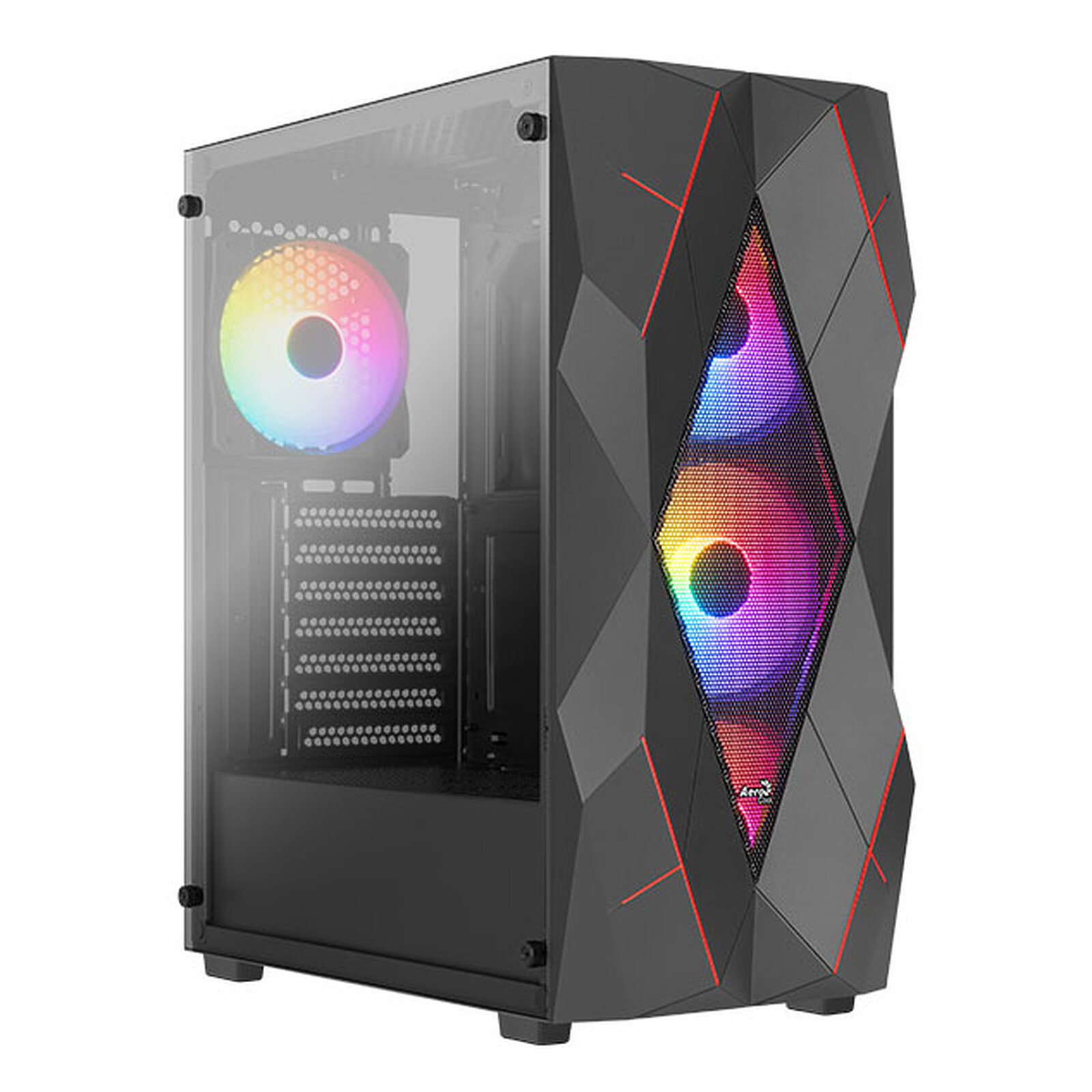 Aerocool Bolt Mid-Tower RGB PC Gaming Case, ATX, Full Acrylic Side Panel, RGB LED Strip Included, 13 Lighting Modes, 1 x 120mm Black Fan Included, High Performance Mid - Tower Case , Black