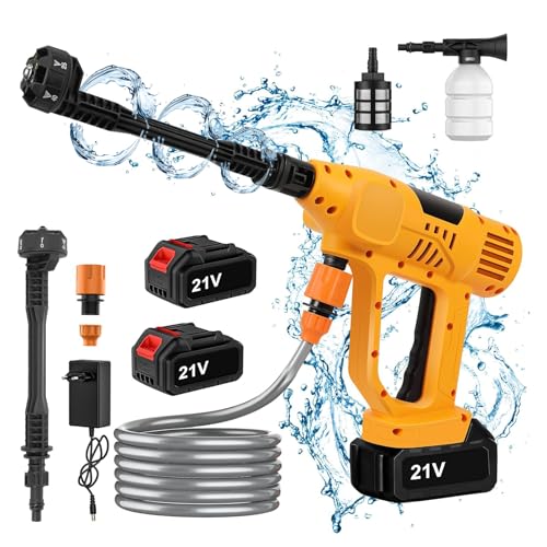 Nettoyeur Haute Pression sans Fil avec Affichage LCD, 725 PSI, 2 Batteries Rechargeable 21V, Buse 6-en-1, Nettoyeur Haute Pression sur Batterie pour Nettoyage Voiture, Sol, Mur et Clôture