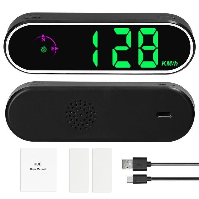 Generic Affichage Tête Haute pour Voitures, Affichage Tête Haute HUD de Voiture, Compteur de Vitesse GPS Numérique avec Vitesse, Direction de Conduite, Réglage Automatique de la luminosité, Alarme