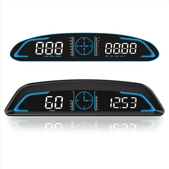 Affichage Tête Haute De Voiture – Compteur De Vitesse GPS Universel | Jauges Numériques HUD | Avec Lumière De Détection Adaptative Écran Haute Définition Alarme De Survitesse Vidéo Disponible Compteur