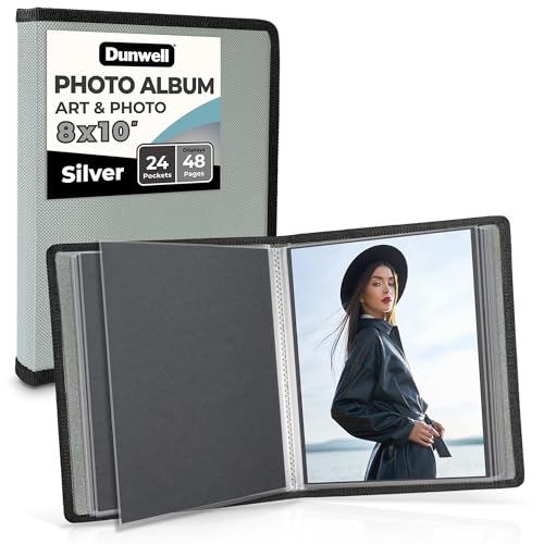 Dunwell Porte-documents artistique pour photos de 20,3 x 25,4 cm – (argent), album à couverture souple avec 24 pages reliées, affiche 48 photos ou œuvres d'art, classeur de présentation avec
