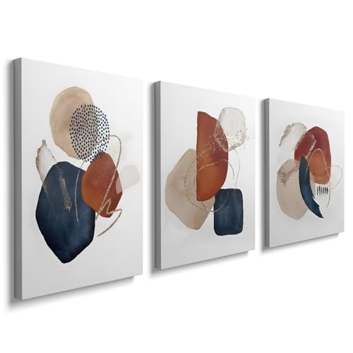 Toile murale non encadrée 3 pièces, Impressions abstraites géométriques minimalistes, Affiche formes terracotta, bleu marine & feuille d'or fond beige, Déco murale moderne luxe pour salon chambre