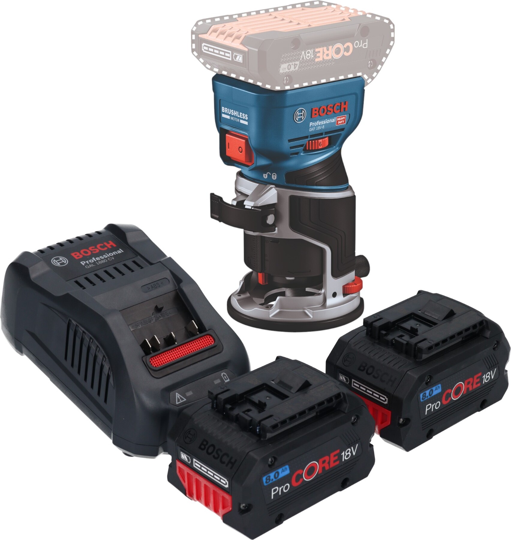 Bosch GKF 18V-8 Professional Affleureuse sans fil 18 V 8,0 mm Brushless + 2x batterie ProCORE 8,0 Ah + chargeur