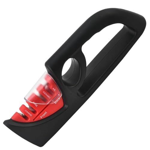 OAYEW-Aiguiseur Couteaux, 4 en 1 Affuteur Couteau Professionnel avec Une Paire de Gants Anti-Coupure, eguiseur de Couteau pour Ciseaux et Couteaux de Cuisine de Différentes Tailles-Rouge