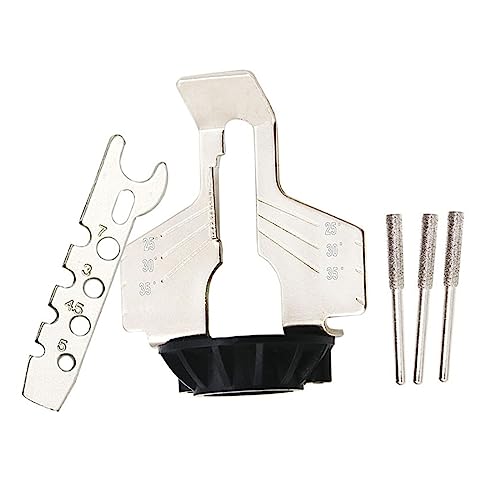 OSALADI Kit D’affûtage pour Chaîne de Tronçonneuse Fraises en Émeri, Adaptateur Métallique et Guide D’Angle, Accessoires pour Affûteur Électrique, Compatible Outils Rotatifs, Entretien