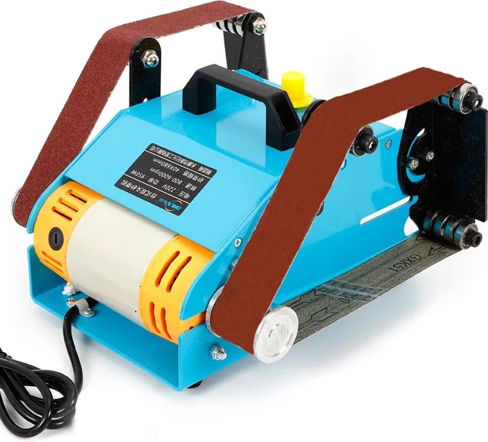 Eujgoov Mini Ponceuse à Bande Bricolage Machine à Polir Banc Ponçage Affûteuse Banc Meuleuse Ceinture Linisher Rectifieuse électrique(895 (200W))