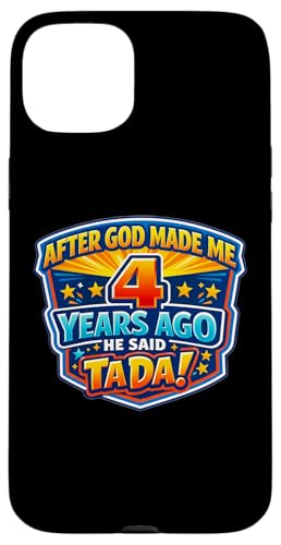 Après Que Dieu m'ait créé il y a 4 Ans, il a Dit Que c'était Amusant pour Le 4e Anniversaire Coque pour iPhone 15 Plus