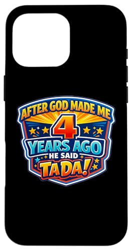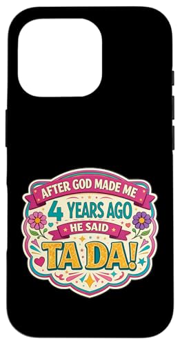 Après Que Dieu m'ait créé il y a 4 Ans, il a Dit Que c'était Amusant pour Le 4e Anniversaire Coque pour iPhone 16 Pro