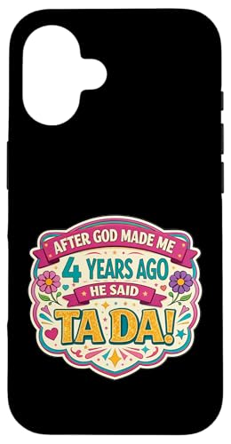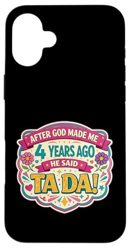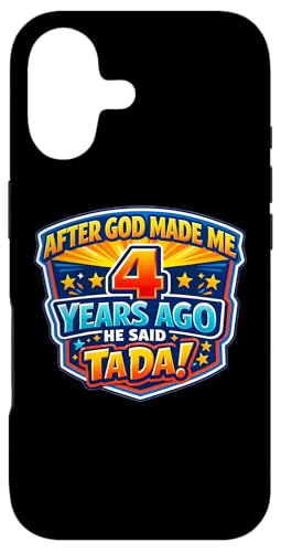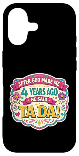 Après Que Dieu m'ait créé il y a 4 Ans, il a Dit Que c'était Amusant pour Le 4e Anniversaire Coque pour iPhone 16 Plus