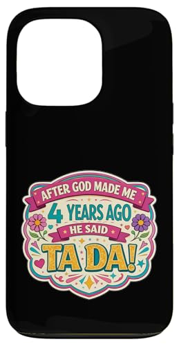 Après Que Dieu m'ait créé il y a 4 Ans, il a Dit Que c'était Amusant pour Le 4e Anniversaire Coque pour iPhone 13 Pro
