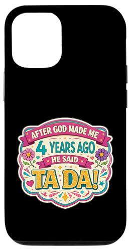 Après Que Dieu m'ait créé il y a 4 Ans, il a Dit Que c'était Amusant pour Le 4e Anniversaire Coque pour iPhone 12/12 Pro