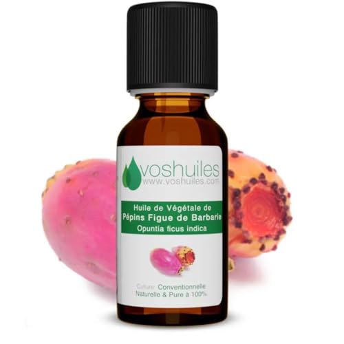 VOSHUILES - Huile Végétale de Pépins de Figue de Barbarie Pressée à Froid - 100% Pure et Naturelle - Flacon Verre Ambré avec Compte‑Gouttes - Soin Visage et Corps - Anti‑Âge et Nutrition Intense - 5ml
