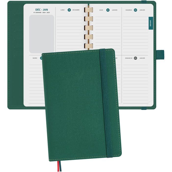 Petit Agenda 2026 de Poche A6 17 x 11 cm [en Français] - Agenda 2026 Spirale Semainier avec Couverture Souple en Cuir PU Vert Forêt