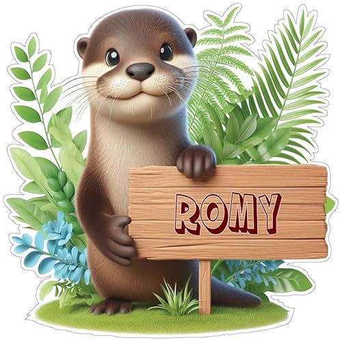 Stickers de Loutre avec prénom personnalisé - Autocollants d'animaux pour porte, meuble, livre, agenda, voiture, chambre d'enfant fille et garçon - Quantité et taille au choix