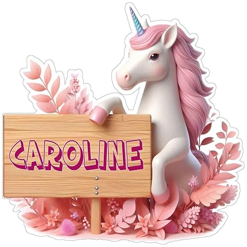 Stickers de Licorne avec prénom personnalisé - Autocollants d'animaux pour porte, meuble, livre, agenda, voiture, chambre d'enfant fille et garçon - Quantité et taille au choix