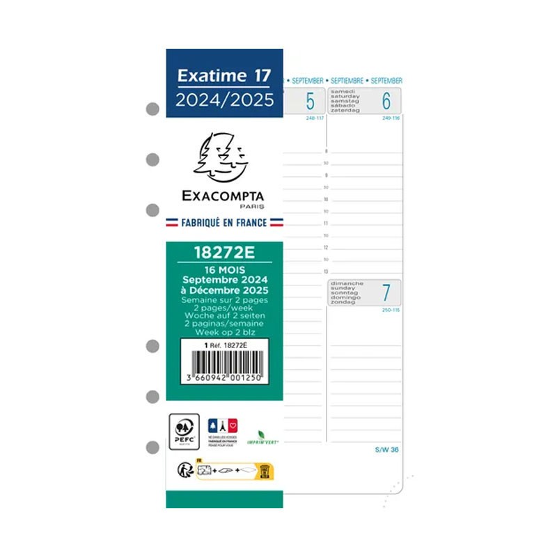 Recharge pour agenda - Exatime 17 - 2024/2025 - 18272E - Septembre à décembre
