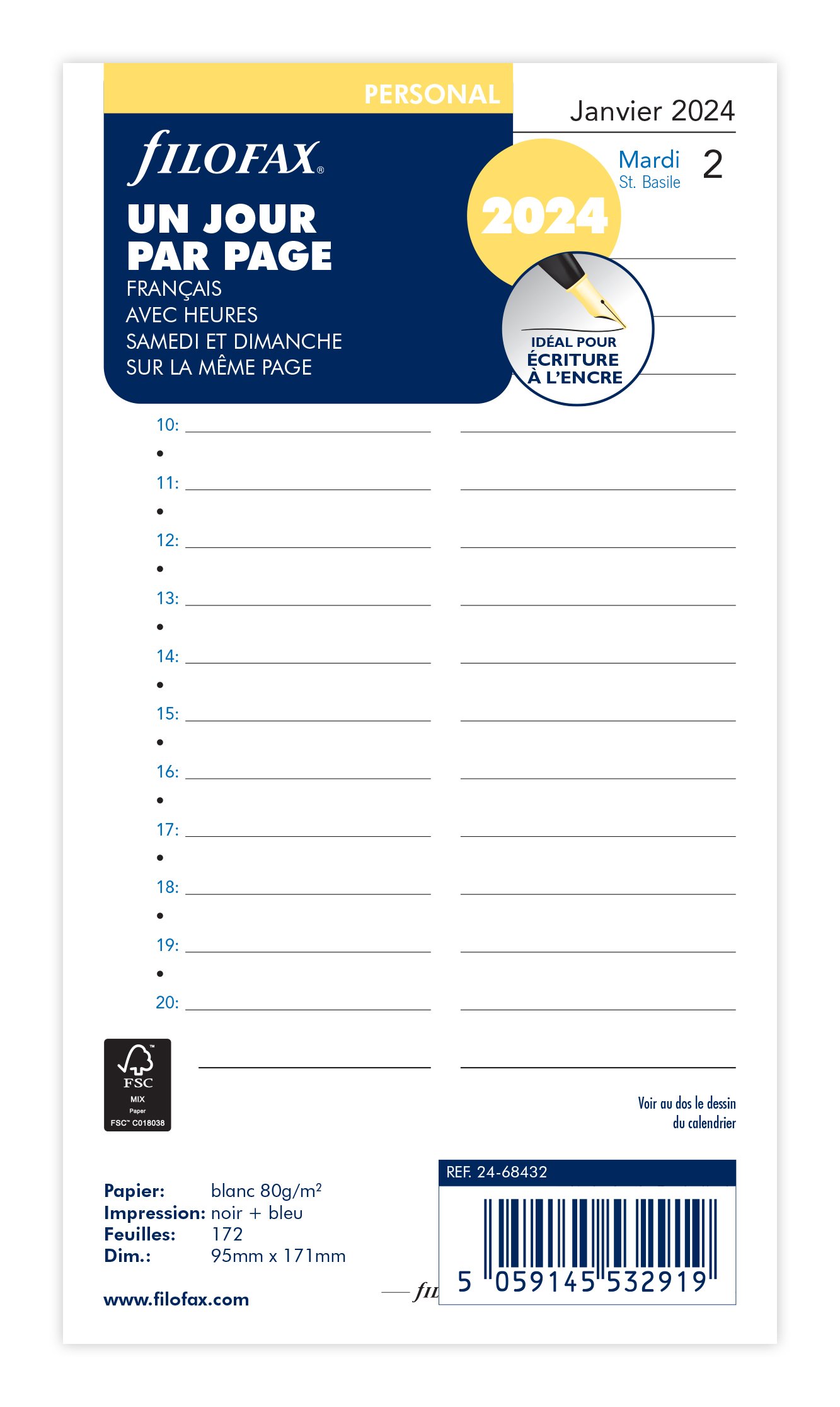 Recharge agenda civil journalier 2023/2024 Filofax - Blanc - A5