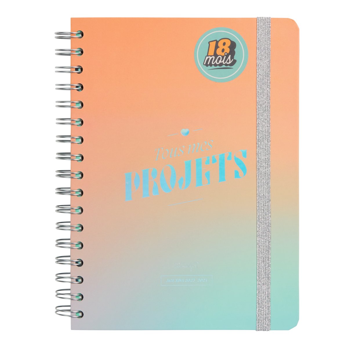 Agenda Scolaire Semainier 2023/2024 - Tous mes projets - 15,6 x 2,1 x 22,1 cm - Mr Wonderful - Orange/Bleu
