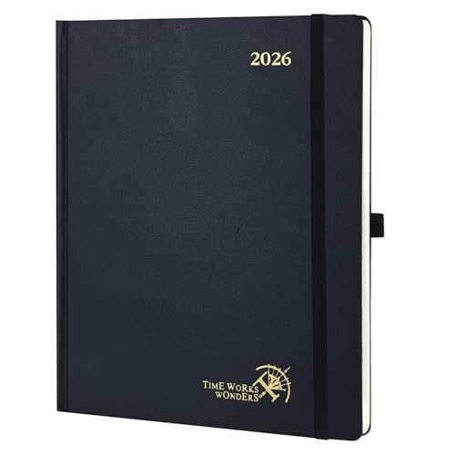 POPRUN Agenda 2026 Semainier 26,5 x 21,5 cm - Couverture Rigide, Vertical Weekly Planner, D'Jan 2026 à Déc 2026-12 Mois, Avec signet à 2 rubans, Papier 100 g/m², Noir