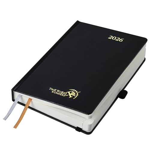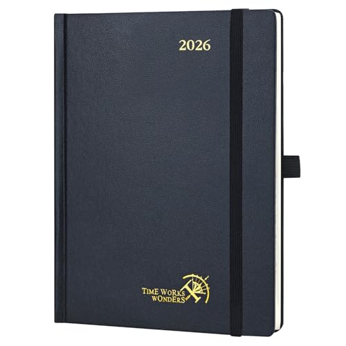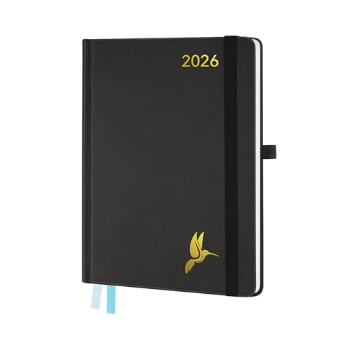 POPRUN Agenda 2026 Journalier 21,5 x 14,5 cm - Couverture Rigide, 1 Page par Jour A5 Planner, D'Jan 2026 à Déc 2026-12 Mois, Avec signet à 2 rubans, Papier 80 g/m², Noir