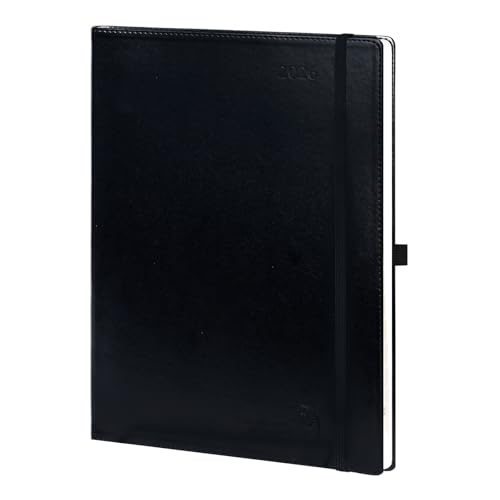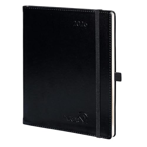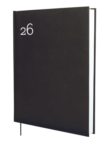Finocam Agenda 2026 1 jour par page | janvier à décembre (12 mois) | Agenda annuel 2026 | Couverture rigide rembourrée Milano - Noir