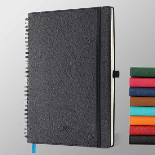 IN-LUXPRO Agenda 2026: Agenda Semainier et Carnet de Notes A4 Grande 29x21,7 cm Spirale, Planificateur Hebdomadaire D'Jan 2026 à Déc 2026(12 Mois) Scolaire, Papier 100GSM, Couverture PU cuir Noir