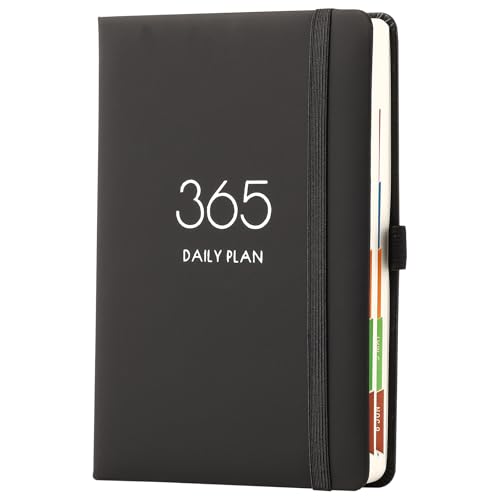 Agenda 2026 Journalier A5 – Une Page par Jour, Janv.-Déc. 2026, Agenda Quotidien et Mensuel, Onglets Colorés, Porte-stylo, 2 Signets, Passant Stylo et Pochette, Noir