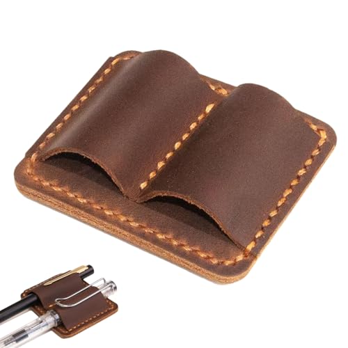 Gosknor Porte-Stylo en Cuir Marron avec Clip, 7,7 x 6,1 cm Double Trou Organiseur de Stylos Pratique Agenda Porte-Crayon Boucle de Clip pour Livres Cahiers Planificateurs Étui pour Tablette
