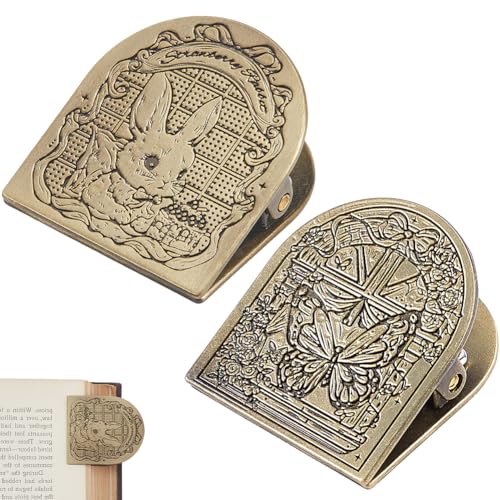 craspire Pince à Livre Vintage en Métal Motif Lapin et Papillon Bronze Antique pour Carnet de Voyage Petite Pince à Reliure Support de Page pour Organiseur Journal Intime Agenda Lecteur Amoureux