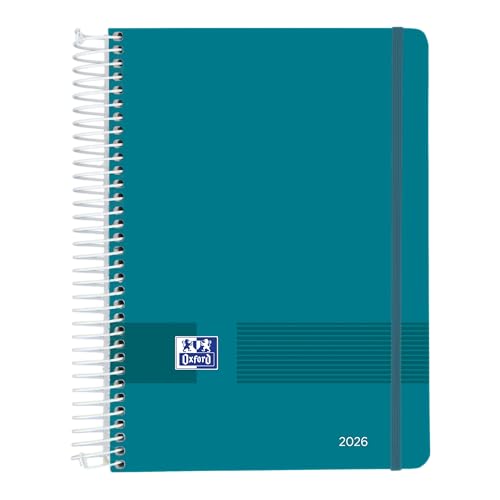 Oxford Live & Go Agenda 2026 1 jour par page, A5, couverture en plastique à spirale, espagnol, couleur aqua