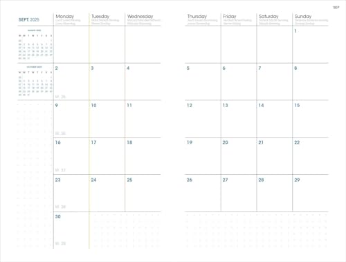 Quo Vadis - Agenda 16 mois - 2025-2026 - Plan Week - Semainier Planning - Multilingue - Andrea - Bleu - 16 mois de septembre à décembre - 16x24 cm - Papier Clairefontaine blanc - Fabrication française